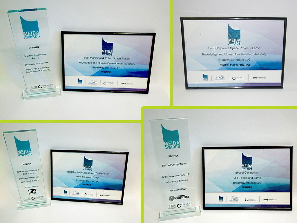 “We are delighted to announce that Broadway won 3 awards at the Middle East Interior Design & Architecture Awards 2016 in the following categories: